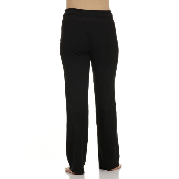 The Women’s Wide Leg Pants are made of a knit cotton and polyester blend, with a Calvin Klein logo and a drawstring waist.