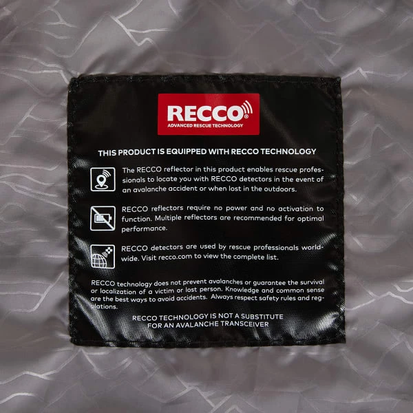 - Recco Reflector – A small band-aid size battery-free transponder which makes you searchable to professional mountain rescue teams in the event of an avalanche or other emergency.