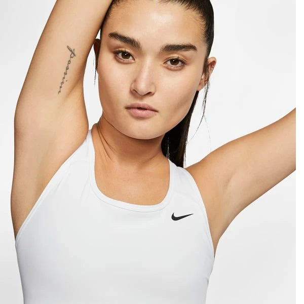 The Nike Swoosh Sports Bra is made from snug, stretchy fabric for reliable support and comfort during medium-impact fitness activities such as jumping, running, and lifting. A racerback design lets you move naturally for optimal range of motion and Nike’s Dri-FIT technology wicks away sweat to keep you dry during. The bra is finished with the Nike swoosh design for cute, sporty style.