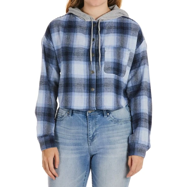 When the weather gets a bit chilly, you’ll need this stylish hooded and cropped flannel from No Comment.