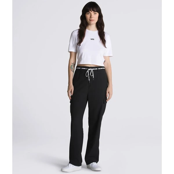 The Flying V Crop Crew Sport Tee is a heavy cotton jersey crewneck t-shirt featuring classic front logo graphics.