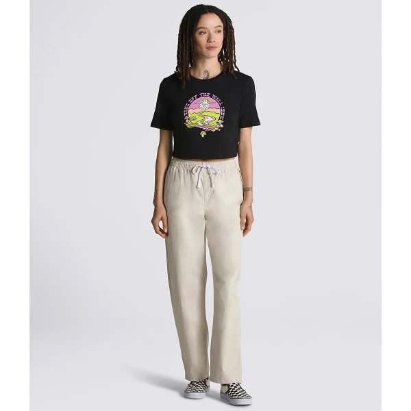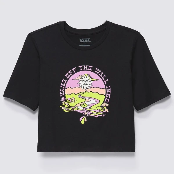 The Resort Mix Crop Tee is a jersey crop top crewneck t-shirt featuring classic front logo graphics.